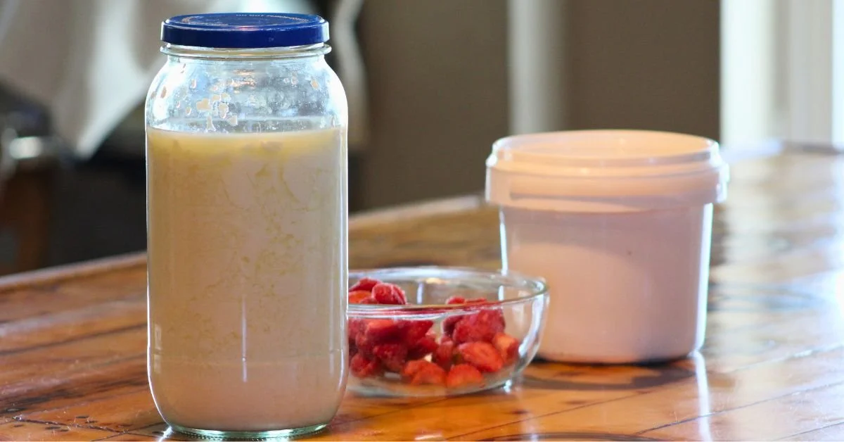 It’s like a tangy frozen yogurt, naturally fermented, sweetened with honey, and blended with whatever fresh fruit you have on hand. It’s simple, refreshing, and one of those humble farmhouse recipes that feels a little magical on a hot summer day.
